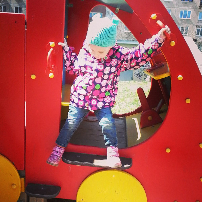 третье- на этой неделе в город вроде бы вернулось тепло и солнышко,мы ринулись оголтело гулять на площадки) и Оливия научилась слезать и залезать на все горки и препятствия) АЛЛИЛУЯ! Я конечно люблю силовые нагрузки,но иногда так приятно возращаться домой не в мыле от постоянных тяганий ребенка)