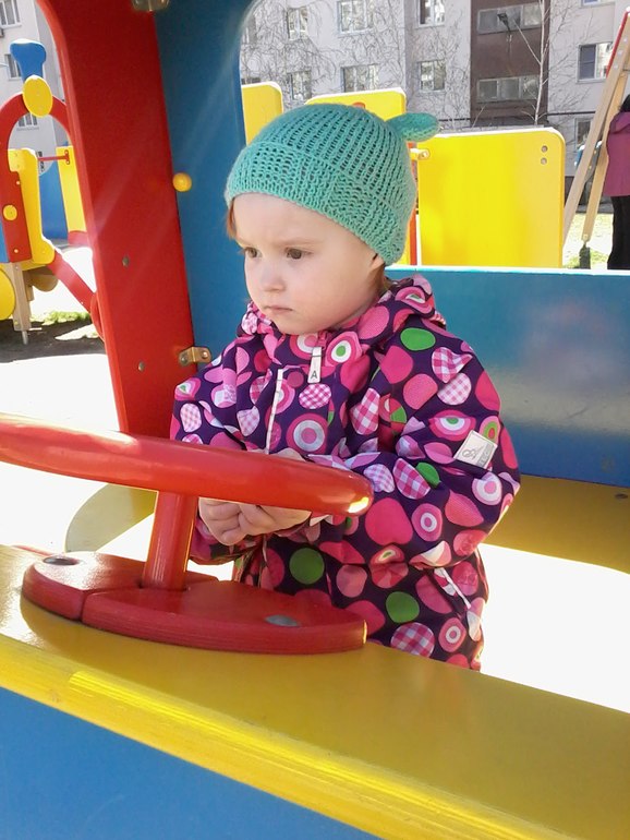 очень любит эту машину)большую часть прогулки сидит в ней,рулит,скорости переключает, тыкает в болтики, типа того музыку включает и поет сама) закошмарила недавно девочку с бабушкой, у них состоялся диалог