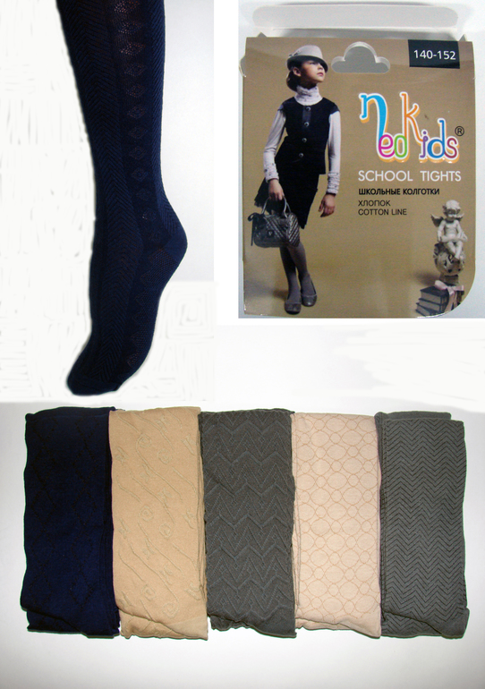 2)Колготки детские «Neo-Kids» на девочку ажурные хлопок. Производство Южная Корея. Состав: 80%хл+17%п/э+3%эл. Легкие и тонкие. Цвета в ассортименте. Размеры: 86-92, 92-98, 98-104, 104 -116, 116-128, 128-140, 140-152, 152-164. Упаковка: 10 штук одного размера разных цветов. Цена за 1 шт: 97 рублей.