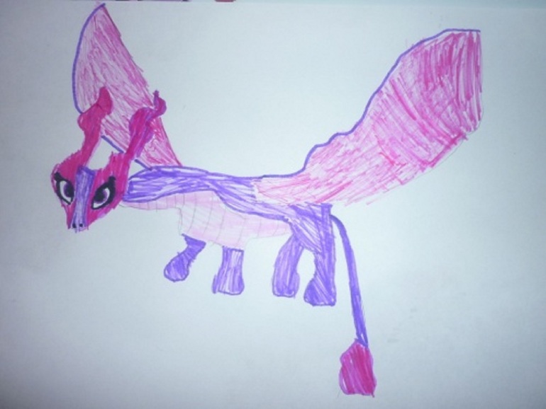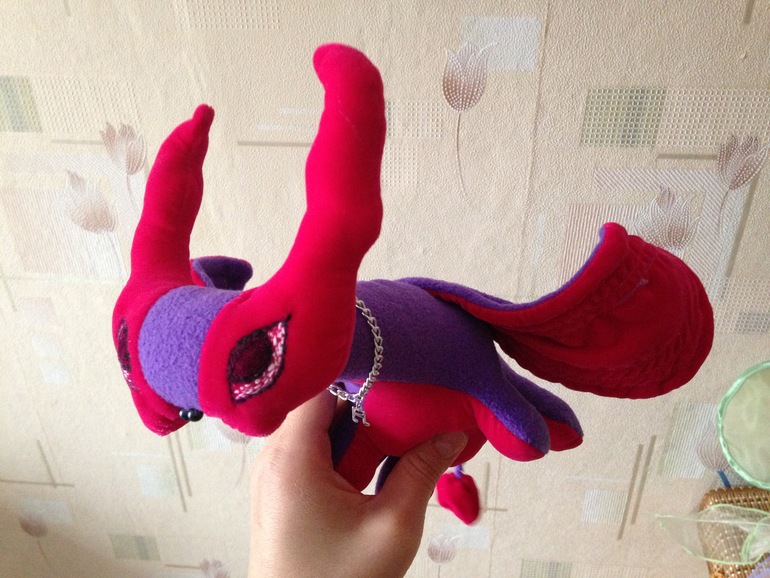 От мордочки до попы 28см, размах крыльев 40. Сшит на руках, крылья декорировала на машинке.