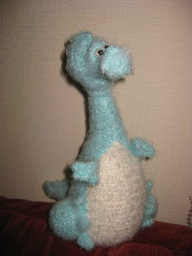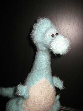 Если долго мучиться... Я еще когда зайцев из этой пряжи вязала, зарекалась, что больше связываться с ней не буду. Но другой "драконовой" дома не оказалось... Супруг еще клыки велит приделать, пока что-то не вырисовываются, как и крылья.