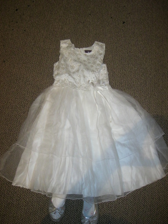 Подарю платье (134 р.) и туфельки (33 рю) для девочки.