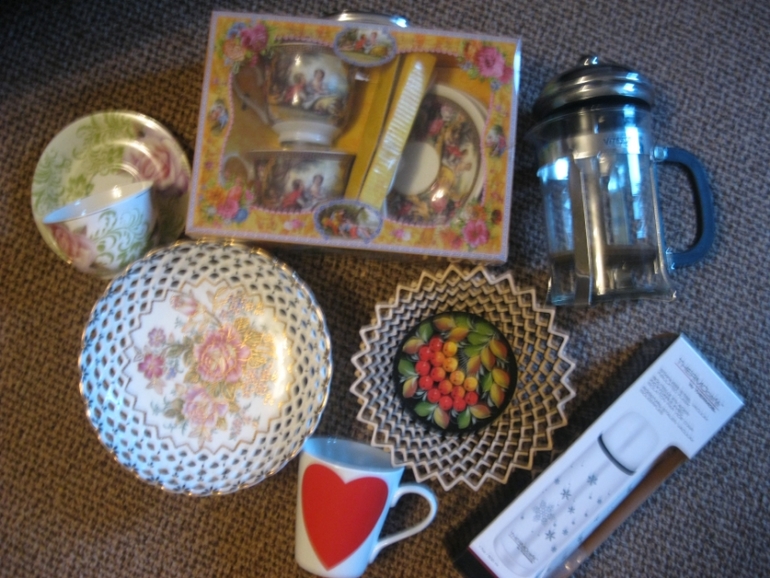 1. Отдала- Немного посуды - чашки с блюдцами, заварной пресс, вазы для фруктов, термос