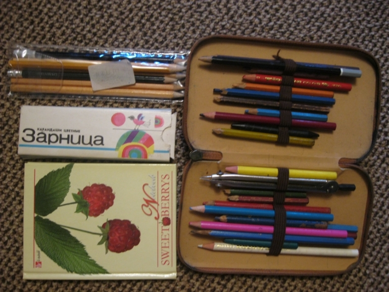 2. Отдала- много карандашей цветных не новых и блокнот