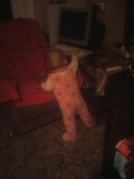 да, точно, чтобы не забыть... уже почти 5 дней как Вася сам начал вставать на спинку моей кровати, тумбочки, кресла, пылесоса.... убрала с комода салфетку, иначе все, что на ней автоматом на полу. все также упорно гоняется за пультом от телека. влюбился в ....батарею. у нас старая, совдеповская - чугунные ребра -так полюбляем облизывать. не горячая, а еле теплая)))) сегодня положила его на пузо в детскую кровать, с такими криками - посадить не могу, поскольку ноги упирает и все. отлучилась, пардон, в с/у. погудел для виду и тишина. выглядываю из своего укрытия, а мой молодец не только из положения на пузе встал на свои две, но и аккурат сам перставляя ноженциями прогребся к углу кроватки и сосредоточенно со скрежетом загрызает спинку кроватки. и так, на память.... сижу в зале уткнувшись в тв, малой уже на четвереньках!!!!(дня 3) кружится рядом....и вдруг слышу мыша от компа - шмяк на пол!!!! я подорвалась поднять, Васька ухватился за елку стоящую рядом. та спикировала на палас, по ходу шарики с нее слетели. я хватаю елку и на место, тут я вижу, что мое дите уже дергает гирлянду, висящую за елкой и.....естес-но гирлянда падает мне голову.... ах, Вася, Вася, дитенок, мой сладенький)).... вечер...покупала, уложила. откупорила шампань...пригубила...допишу и баиньки.... всех с новым годом! пусть этот год будет лучше, чем ушедший......