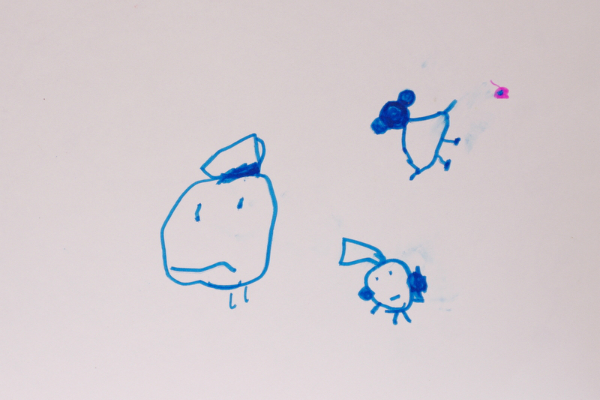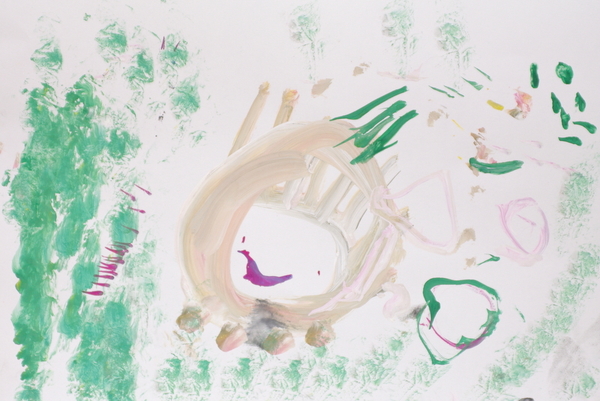 А еще вчера мы познакомились с великаном Джорджем. Аришуля очень его полюбила, несколько раз прослушала и потом рисовала.