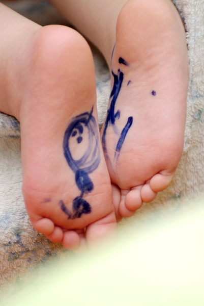 Потом была гигантская черная улитка (её я выбросила без фото), которую Ариша гладила, гладила, а потом делала "звериков" (запомнила, как мы с ней на ладошках зверей рисовали - надо будет сегодня завершить шедевр)