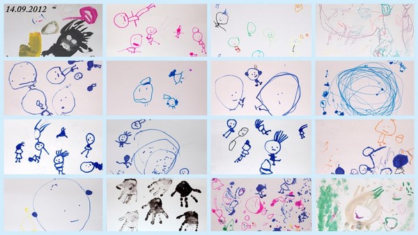рисует14 сентября. Аришка приболела, настроение не стабильное, поэтому мы решили ничего не делать. Поэтому я вся такая оригинальная просто покажу все (почти все, т.к. несколько листов я уже выброила до того, как придумала показать всё за день) шедевры за день.