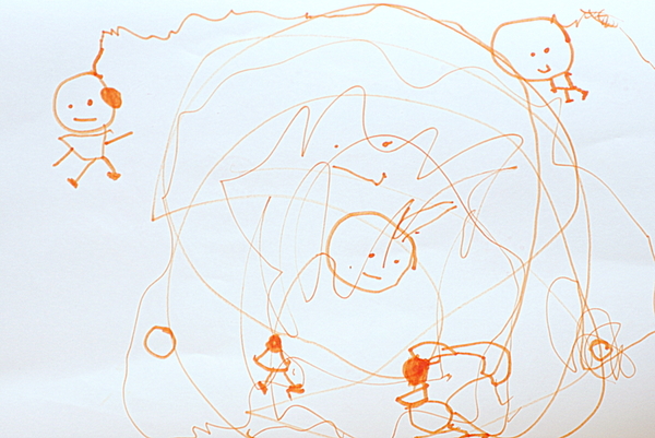 А это я не знаю что. Слева черный волк, справа - Чебурашка. А что такое сверху, Ариша не сказала.