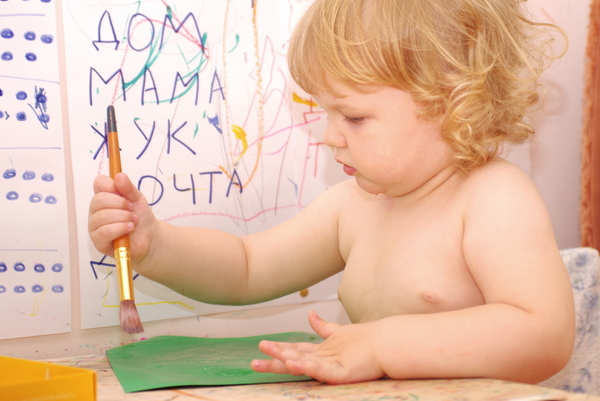 Конечно же, больше всего Арише понравилось покрывать лист клеем. Кроме этих трех она еще парочку покрыла клеем, а листики клеить не стала :)