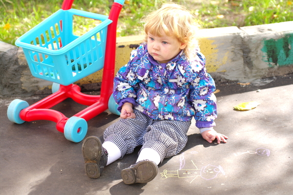 Тележку мы аж на год покупали, а тут пришлось уже убранную достать, т.к. в соседнем дворе рабочие с тележками землю и кирпичи возят, а Аришке не дают - жадины!