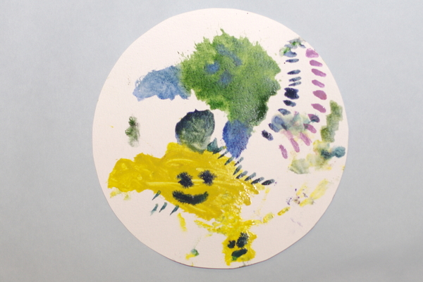 Утром до завтрака Аришка увидела заготовки мандал и попросила акварель: