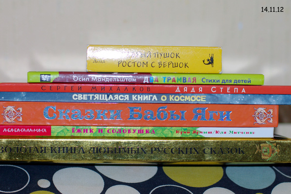 Арига сама долго разглядывала Сумрак. Вертела туда-сюда. В Золотой книге читали про Емелюшку и про Царевну-лягушку. Автоазбука совсем не понравилась. Я попробовала читать её фоном, но Аришка быстро закрыла. Пусть полежит, подождет.