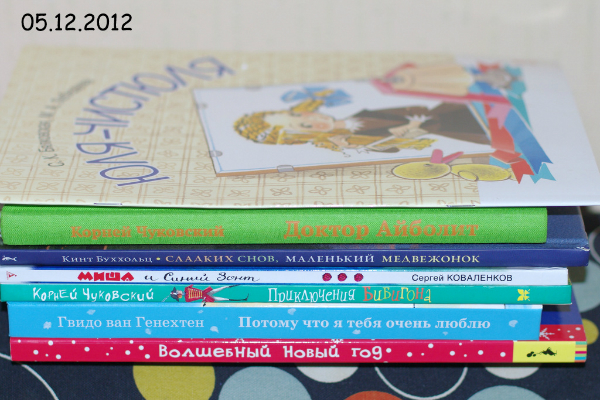 Во Временах года фоном читала Аришке стихи про зиму. Разбирали коробку с книгами, нашли Чуковского. Прочли Телефон, Мойдодыра, Муху и стихи, больше Ариша не стала слушать. Наслушалась что ли. Слишком много в детстве его читали. Теперь из Корнея Ивановича у нас только Бибигон в почете и Айболит в прозе. В Где спит мышка читаем про Элли и жука Балдуина. Айболита читали перед сном 7 глав.