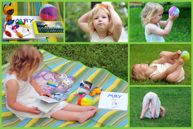 Заодно почитали кошачьи книжки и поиграли в мышат и в мяч - как Кршка Мохнатая ножка :)