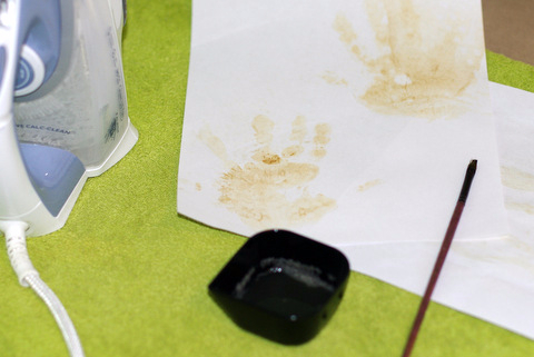 А пока Аришин любимый опыт - окисление железа, содержащегося в яблоке. Ух сколько яблочных рисунков было выглажено! :)