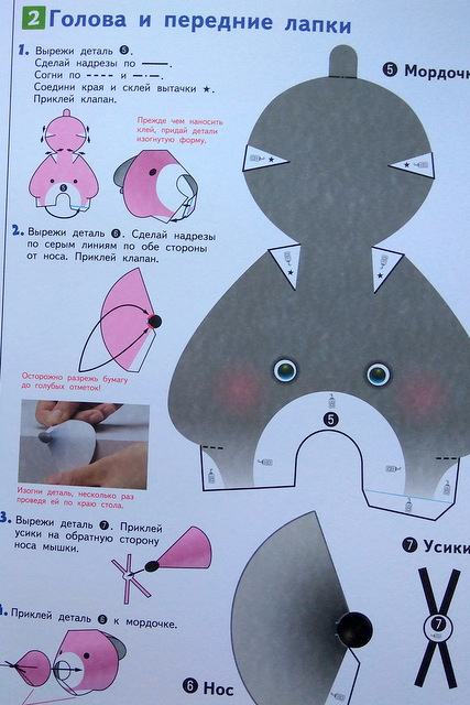 Вот такая шикарная мышь родилась у нее за два вечера. Почти со всем справилась сама. Мне пришлось помочь склеить голову с туловищем.