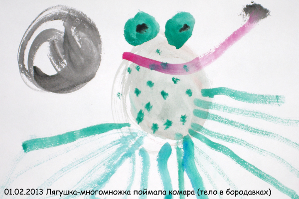 В конце февраля Аришка вдруг начала рисовать пальцы. Много пальцев!