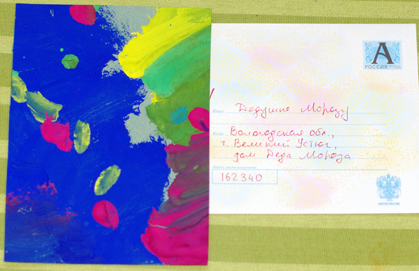 Отправили вчера Деду Морозу открытку от Аришы. Наконец-то, Аришка смогла сама написать поздравления.