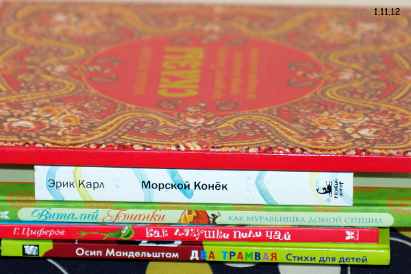 Читали добрую Пампушеньку. Морской конек не впечатлил Аришу, а Хамелеона она мигом захлопнула. На несколько раз прочли Два трамвая. Очень классная книжка. Нам всем нравится. У Бианки читали про лиса и мышонка и про Колобок колючий бок.