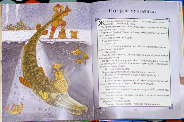 Мы с Аришкой прочли пока только три сказки - про Емелю, Лягушку-царевну и Терешечку.