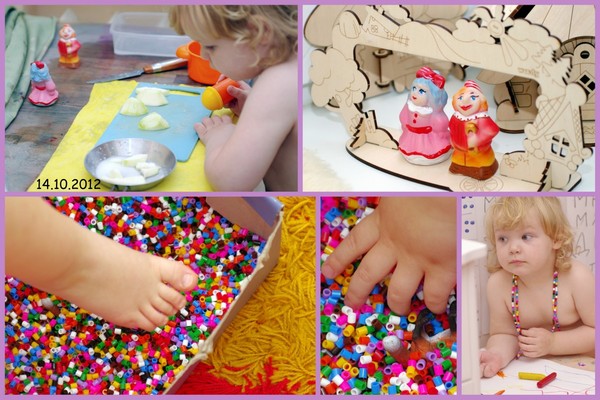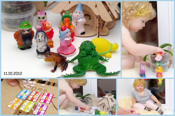 Из игр играли в лего. Ариша строила домик для Кр.шапочки и бабушки, а волка спрятала в мешок и унесла на кухню :) Играла как Кр.шапочка идет-идет и приходит к бабушке, а тут дровосеки с топорами...