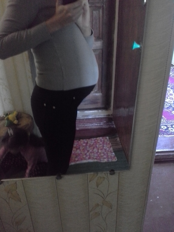 Ну и пуз, правда мы не выросли . Это наши почти 35 недель. С дочкой живот был такой же, и воды немного. ))