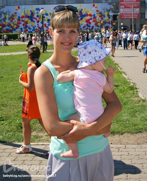 Свекровка купила нам там панамку, (собственно уже на модели) а то мы пришли туда с цветком на голове, и она переживала, что внуче голову напечет и зайку-тильдочку! Мне праздник тоже очень понравился! Загулялись там, я даже впервые кормила Леру на улице. А вечером ходили на красный огородник, там тоже круто было, но салют не стали ждать, т.к. дочу укладывать надо было, так что мы его тоже слышали ))))))