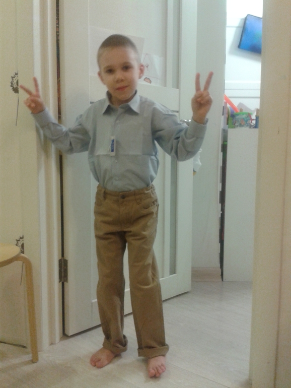 Брюки и джинсы Макару хорошо, подвернула один раз, носить уже можно, очень пригодятся к школе. Рубашка и футболка большеваты еще, к школе, должно быть хорошо! Спасибо большое!!!