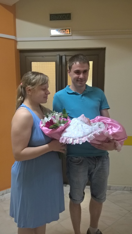 Моя старшая Катюшка 4 июня вышла замуж. 12 июля у них родилась доченька София. В 23.45 вес 4.480,рост 55 см.16 июля их выписали.
