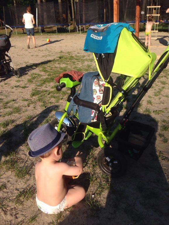 Почему-то я для себя решила, еще до появления ребенка, что не буду сильно его оберегать и, что ребенок должен всё познавать, везде ползать, всюду залазить и все трогать. Я лишь наблюдатель и, конечно, иногда оберегатель). Вот и вчера, мы сидели и ковырялись в песочке, сидеть на месте, естественно, Захару очень быстро надоело и он, со скоростью звука, ломанулся к озеру. Я только и успела его выхватить из воды. Остаток прогулки у нас проходил так: