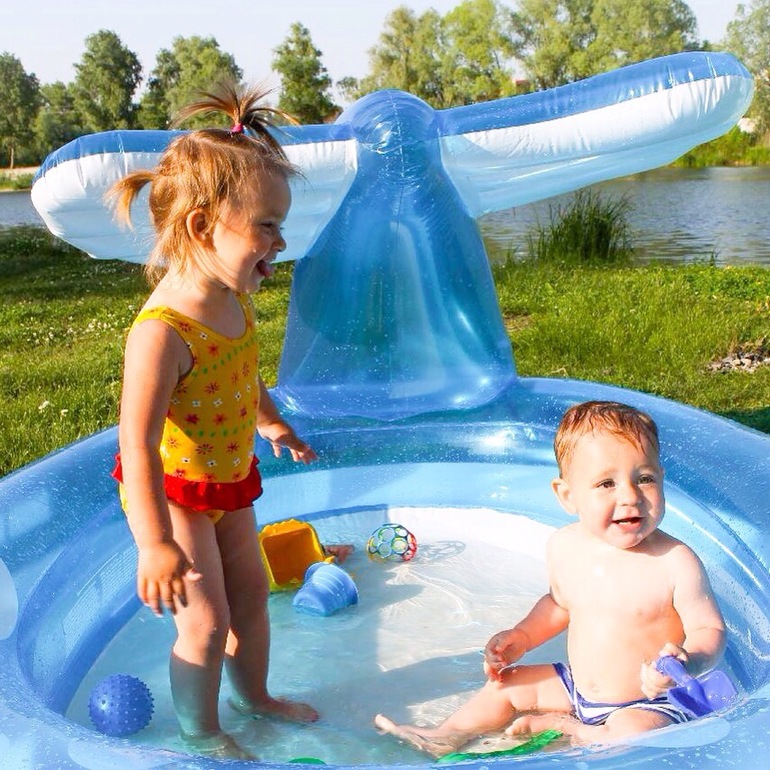 Успели открыть сезон перед похолоданием. Захар от бассейна просто в восторге! Очень любит воду!