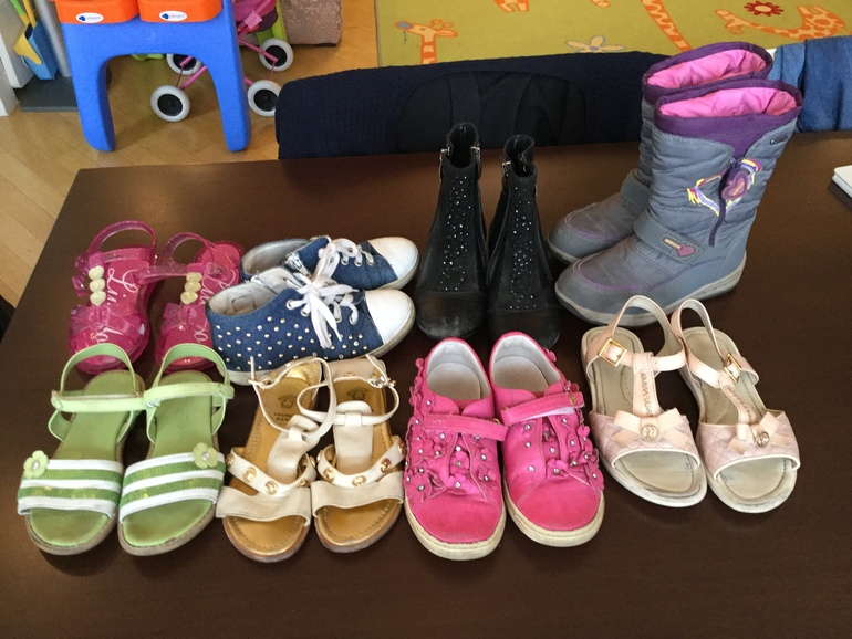 Зеленые блюмарин , кремовые Версаче, кеды цветочки блюмарин, кеды джинсовые блюмарин, пляжик - все 29 размер. Босоножки Розовые с бантиком вивиан, геокс сапоги, ботиночки Tiflani - все 30 размер.