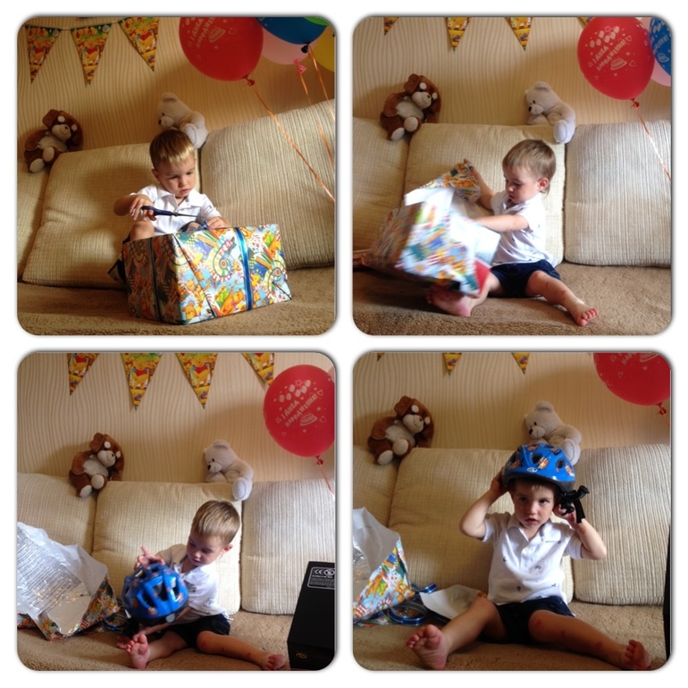 После завтрака мы презентовали Даниилу подарок. Это был долгожданный шлем для велобега. Теперь он не снимает его даже во время еды, уж очень ему он нравится.