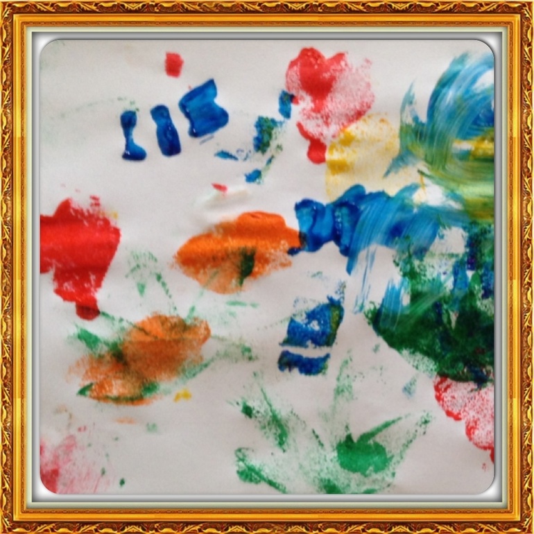 Данька обожает делать отпечатки губками. Рисунки получаются необычайно яркими сочными, а главное рисовать очень легко.