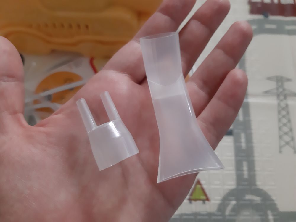 А вот и сама ёмкость, в которую наливается лекарство. И во время процедуры она должна находиться в вертикалбном положении или под углом не более 45 градусов, иначе лекарство просто не будет испаряться, поэтому удобно использовать для уже сидячих малышей или держа ребенка на руках в вертикальном положении. Мой полусидел в шезлонге с опорой на спинку. В комплект входят мультяшные наклейки на корпус ингалятора, их пока не стали клеить, отложили на то время, когда сын немного подрастет и наклеим вместе🙂 Кстати, шумит он достаточно громко, но не настолько, чтобы напугать малыша. Звук и правда похож на шум паровоза или поезда, для детей постарше, которые уже понимают что такое поезд, лечебная процедура может стать веселой игрой😊