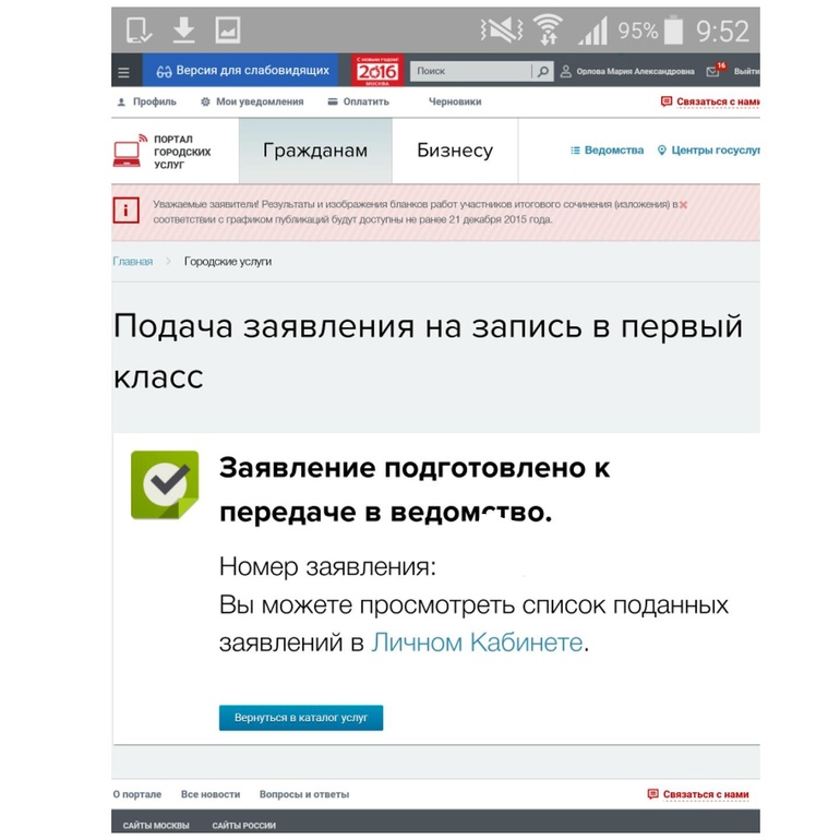 Вот, подано первое заявление о зачислении в школу! Через портал. Надо это слегка отметить!)))
