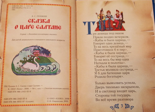 До чтения сказок Пушкина рано или поздно дорастает каждый малыш. Мне случайно попалась небольшая книжка (формат 70x90) со сказкой Пушкина