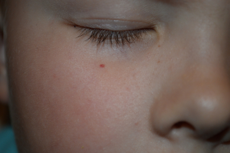 Сегодня ребёнок проснулся с утра вот с такой кровяной точкой. Точка подкожная, наружу не выпирает, кожа не повреждена (т.е насекомые не могли укусить). До этого наблюдались у невролога и кардиолога, но диагноза как такового не поставили. Были боли в суставах, поэтому даже к гематологу направляли, но и там лейкоциртарная формула ничего не показала. Может ли это быть связано, с предыдущими заболеваниями? Или это какая-то другая болячка?. Кстати, последнее время , стала замечать вокруг рта, синие венки, и тонкие сосудики на щеках? Весь инет перерыла, ничего не могу найти похожего.