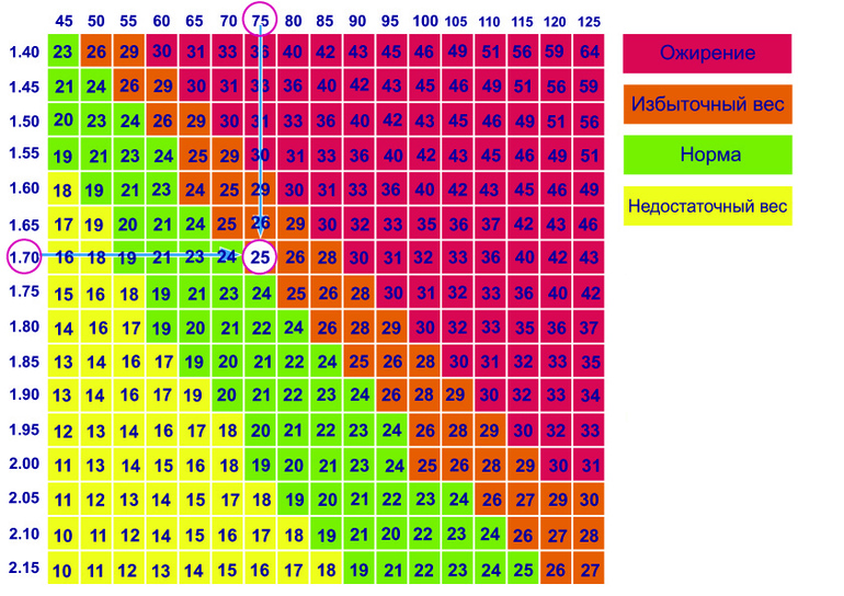 Смотрим на табличку и высчитываем свой ИМТ (напишите свой ИМТ в комментариях)