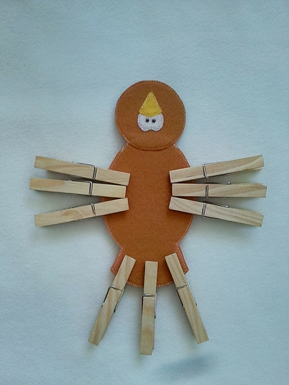 Сын давно увлекся прищепками... Постоянно их стягивает с сушилки. И вот, пару месяцев назад, я добралась до этой замечательной развивающей игры)