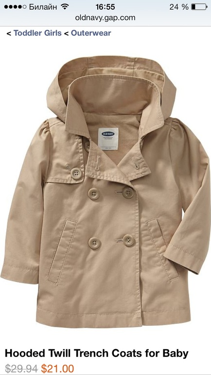 Плащик old navy 4т! Внутри хлопковая подкладка, очень мягкий и приятный на ощупь! Только сейчас 700 рублей!!!