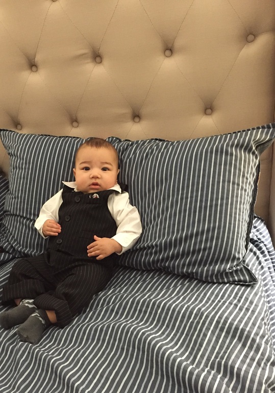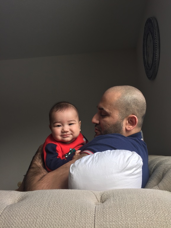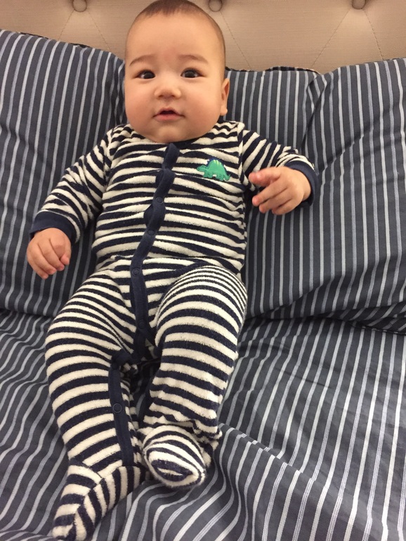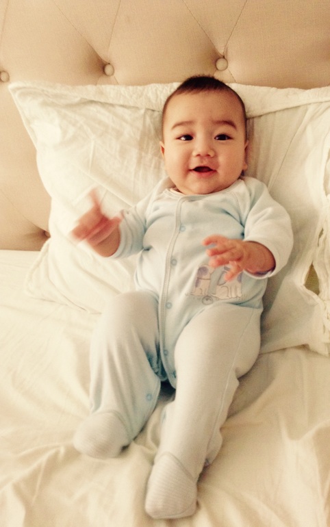 Любимое занятие у нас прыгать, сынок дрыгается и сидя и стоя и лежа. Постоянно машет ручками словно бабочка крыльями и при этом щурится, как муж говорит - делает китайское лицо. Раньше мы топали, я его придерживала за руки, а Аманай гулял по краю кровати, а теперь мы прыгаем вдоль и поперёк всей мебели, а также на нас с папой.