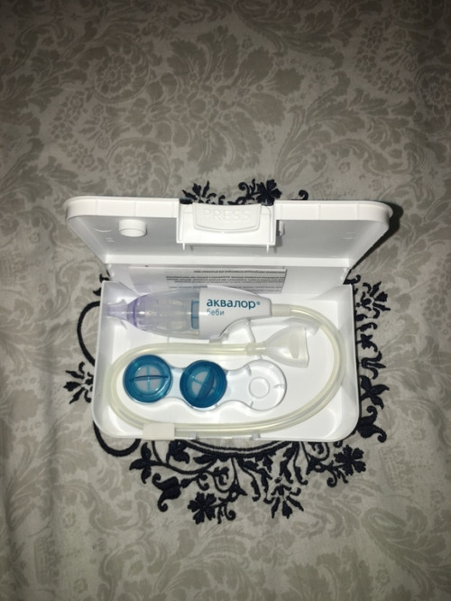 Незаменимым помощником в борьбе с насморк для любой мамочке будет - аспиратор назальный Аквалор беби. Это мой первый опыт использования вообще назальных аспираторов. Упакован в небольшой контейнер, который легко открывается. В набор входит: аспиратор назальный - хорошо разбирается и легко моется и 3 сменных фильтра (ещё один фильтр внутри самого аспиратора), нам хватило на весь курс использования и ещё осталось. Пока не совсем понятно, где закупать в дальнейшем сменные фильтры, но думаю этот вопрос будем решать по мере поступления проблемы. Как использовать подробно описано в инструкции- ребёнок находится на руках одного из родителей, придерживая ручки и головку, другой родитель аккуратно вставляет кончик аспиратора малышу в носик и вдыхает в себя, через резиновую трубочку со специальной насадкой, выделения из носика малыша. После чего, фильтр выбрасывается, аспиратор моется и сушится. Все очень просто) и цена очень даже приятная. Рекомендую мамочкам для использования в домашних условиях).