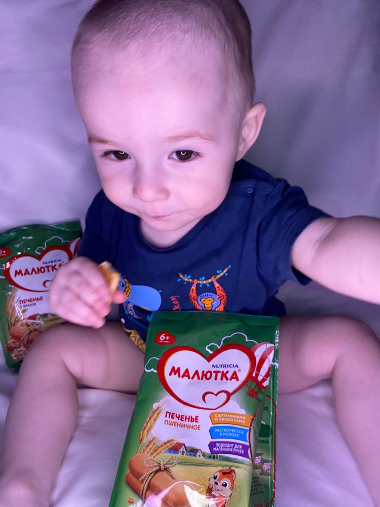 Это печенье я с удовольствием попробовала вместе с своим малышом. Удобный мини-формат печенья. Меня очень радует что производитель российский и такое печенье можно кушать уже с 6 месяцев. Упаковка герметичная и небольшого размера, такой формат удобен для поездок и прогулок, он легко поместиться в мамину сумку или в корзину коляски и всегда перекус будет под рукой. На обороте пачки подробно описан состав печенья, содержит все знакомые ингредиенты и вполне безопасные, печенье богато витаминно-минеральным комплексом без добавления красителей, консервантов, ГМО и трансжиров. Внутри упаковки находится маленькие печенья овальной формы, на каждом из которых написано какое-то тёплое нежное слово - нежность, теплота, забота, любовь. Это очень трогательно и можно ребёнку объяснять значение таких слов или показывать 🥰. Такое печенье можно растворять в теплом молоке и кормить малыша с ложечки (если ваш малыш ещё только исследует первые приемы пищи), добавлять в кашу - имеет чуть сладковатый вкус. Ребёнку очень понравилось, каждый день показывает на пачку и просит ещё) на выбор есть 2 вкуса - пшеничное и 5 злаков. Но не забудьте проконсультироваться с педиатром прежде чем вводить новый продукт в рацион ребёнка 👋