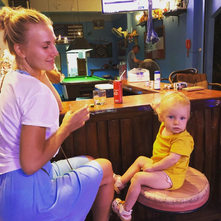 Есть слова "мама", "сися", "Вика" (подруга). Топает уверенно, купается в Андаманском море, строит всякое из песка. Загорел. Зубов 14, выросли без всяких капризов, температуры и тд. В данный момент парень спит поперек кровати и я думаю, с какой стороны прилечь бы мне. Сон один, через 2-3 часа после пробуждения спит около 2 часов. А далее - отбой в 20:00.