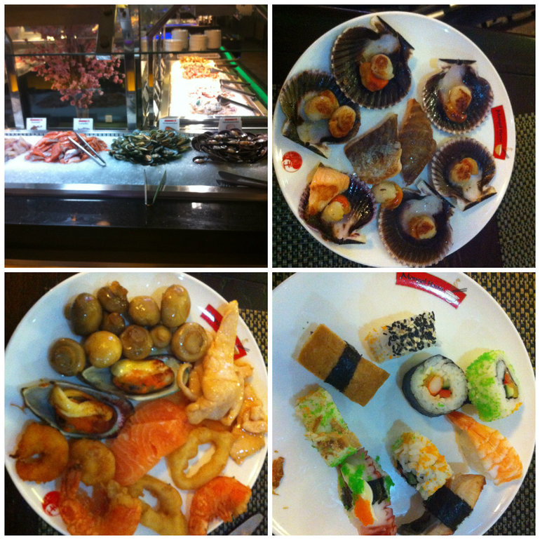 Основным событием сегодняшнего дня стало посещение нового китайского ресторана с монгольским грилем. Он организован по принципу буфета. Так как я худею, то налегала на морские деликатесы, наелась от души.