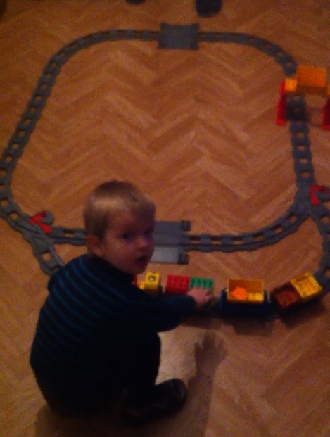 Почти весь день сын с папой строили разные варианты железных дорог и поездов, а также оправляли их в долгие путешествия. Рада, что мы так угадали с подарком