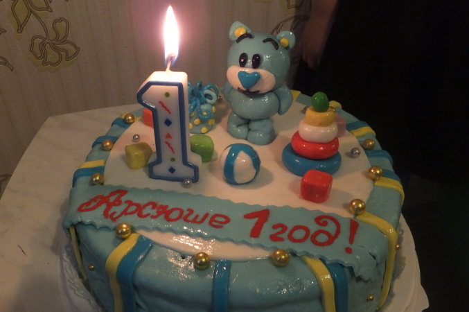 12 апреля Арсюше исполнился годик))) Я проснулась рано,как то все трогательно,вспоминала как ехала в роддом,как рожала,первые дни нашей жизни))) Арсюша проснулся я его зацеловала,за поздравляла во все места,чуть всплакнула,очень волнительно)))) Сынок мой любимый ты подарил мне столько новых чувств,эмоций,море счастья,океан любви)) Все мамочки говорят,что после родов находятся в эйфории,так вот у меня она уже целый год,это нереальное счастье быть МАМОЙ)))) Я очень тебя люблю расти мой хороший здоровеньким,счастливым))) Огромное спасибо моей свекрови в приготовлении нашего праздничного стола,мы старались все было вкусно и красиво,Оле моей коллеге по работе за шикарный торт,Асе http://www.babyblog.ru/user/lenta/Fantaazia за создание такой красоты в оформлении праздника,все было супер,по телевизору весь праздник мы устроили слайд шоу с фото Арсения с самого рождения, а в музыкальном сопровождении были детские песенки!!! Подарили нам все гости и родственни денежку (мы сами просили),хотим купить велосипед и много всего интересненького(бабушки с дедушками еще машинку-толокар,автокресло) Кому интересно прошу под кат наше Годовасие в фото отмечали 13 апреля)))