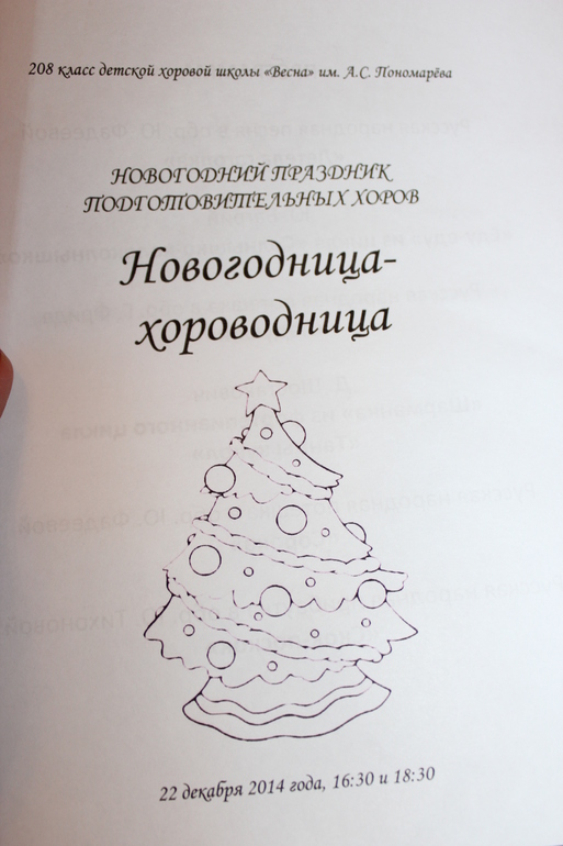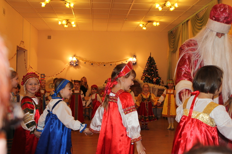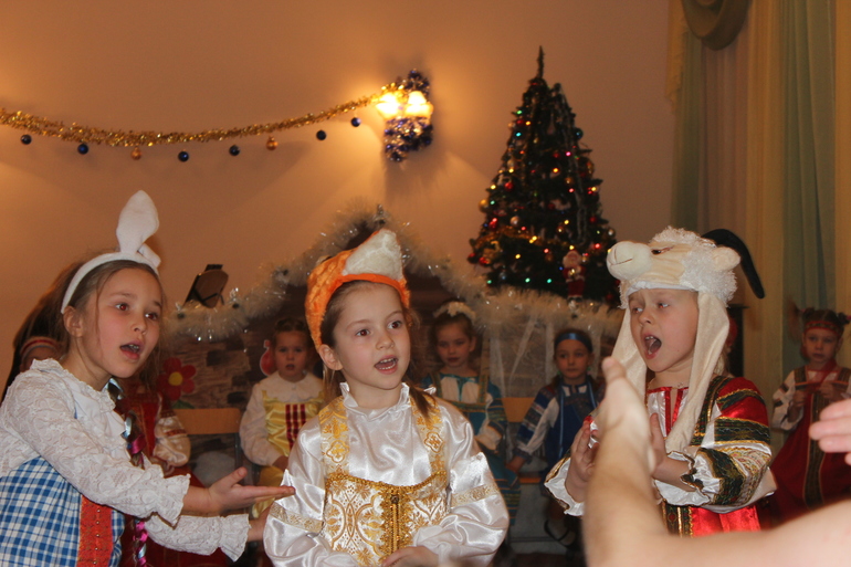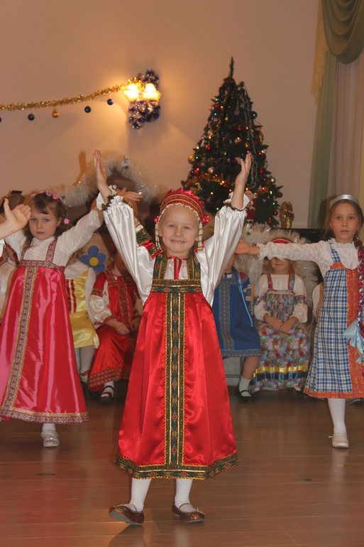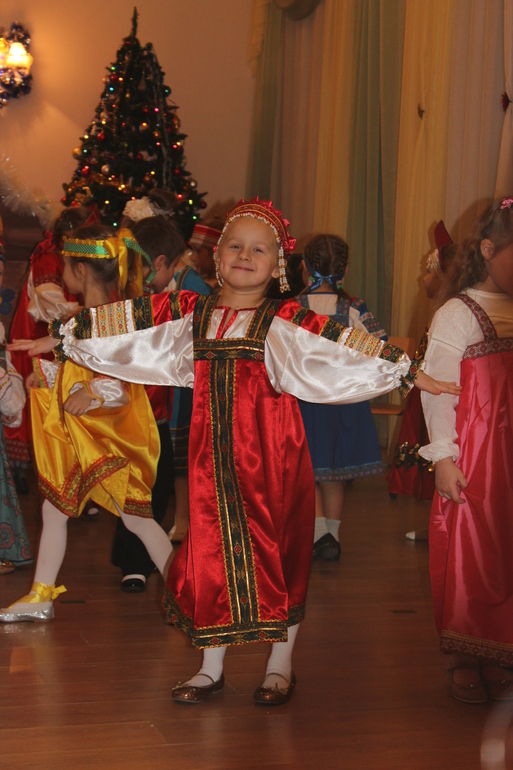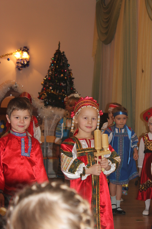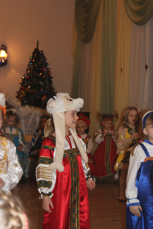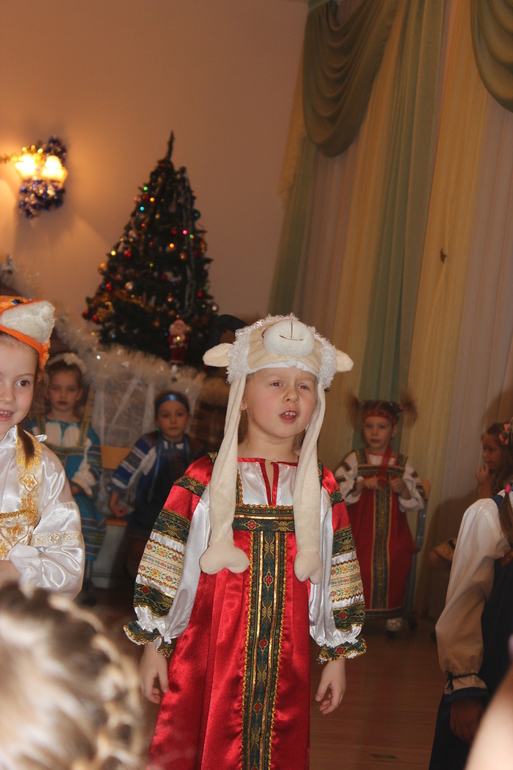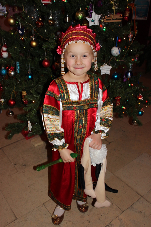 Наша первая новогодняя елка в музыкальной школе была организована в русском стиле. Все прошло на высоте. Если честно, не ожидала такого профессионализма от постановки праздника. Все родители получили колоссальное удовольствие от созерцания своих артистов и испытали гордость за их достижения за первые полгода серьезного обучения. Детки все просто умнички, пели замечательно. Сразу было понятно, что занимаются они не в кружке самодеятельности, а в хоровой школе с мировым именем, лауреатом международных конкурсов детских хоров. Очень надеюсь, что после весеннего прослушивания мы перейдем в младший хор и продолжим, а вернее скорее начнем, серьезно профессионально заниматься хоровым пением.